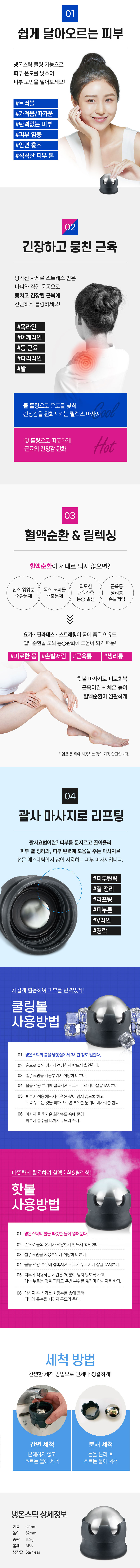 휴렐 냉온스틱 마사지볼 셀프마사지기 탄력 매끈한 피부 바디 관리