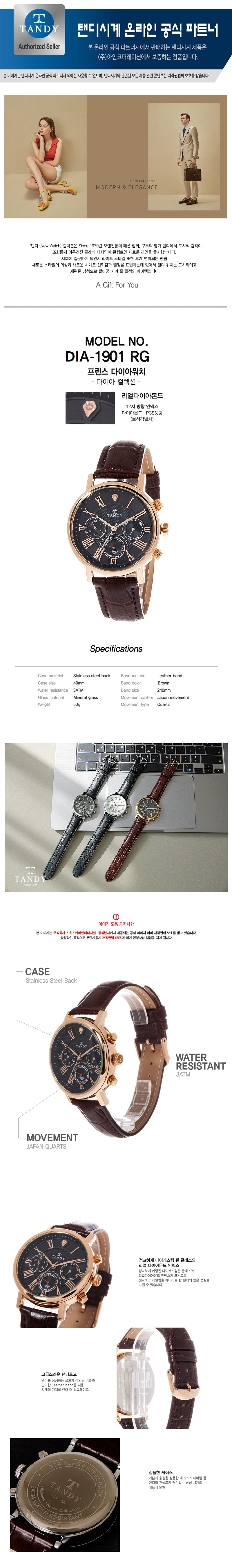 [탠디] 다이아컬렉션 클래식 블랙판 로즈골드 프레임 가죽스트랩 남성용