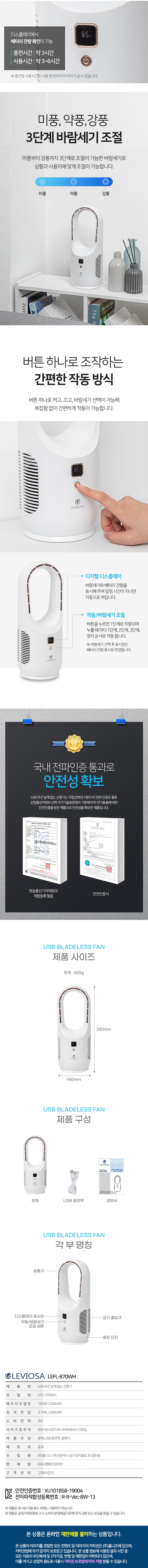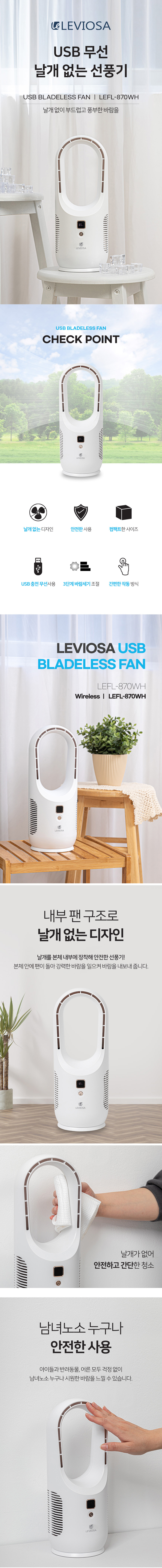 [레비오사] USB 무선 날개없는 선풍기 LEFL-870WH